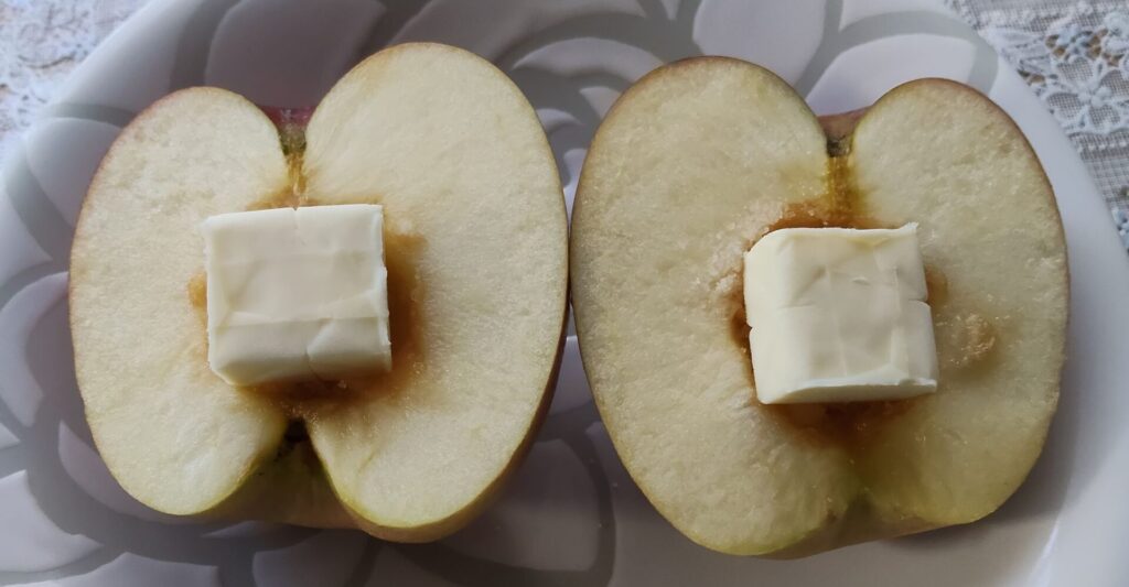 リンゴに開けたくぼみが小さかったのかバターが溢れちゃいましたけど出来たのでヨシ!