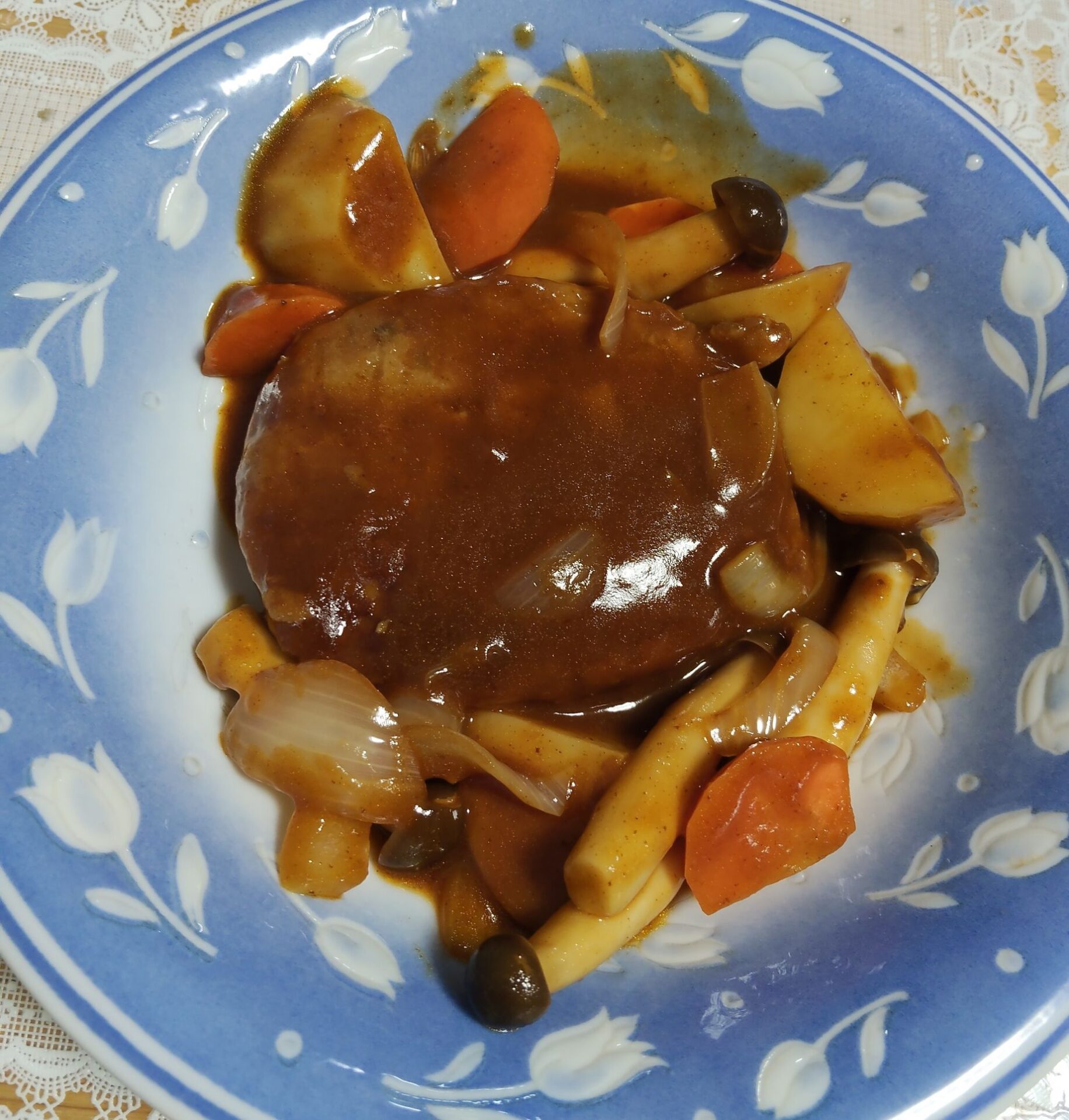 それと思ったよりソースが少な目になったので、盛り付け時にハンバーグがひたる位の煮込みハンバーグにしたいならデミグラス缶は2缶あったほうが良いかもしれないですね。