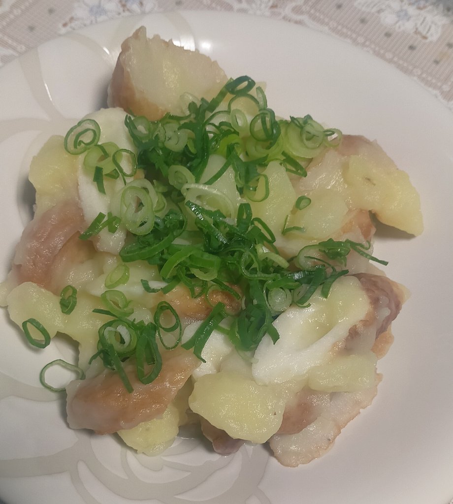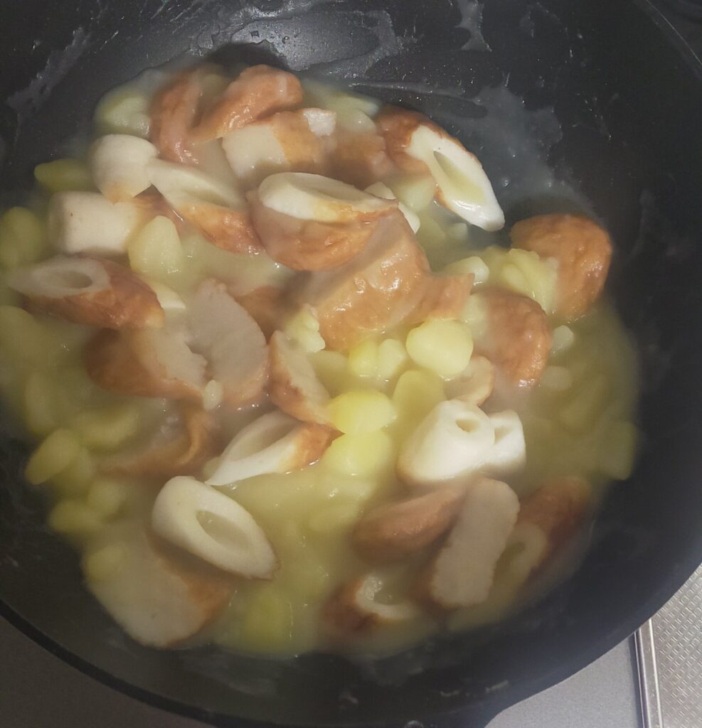 元のレシピではちくわとじゃがいもだったんですが、量を増やすついでに同じ練り物のさつま揚げを加えてみました。