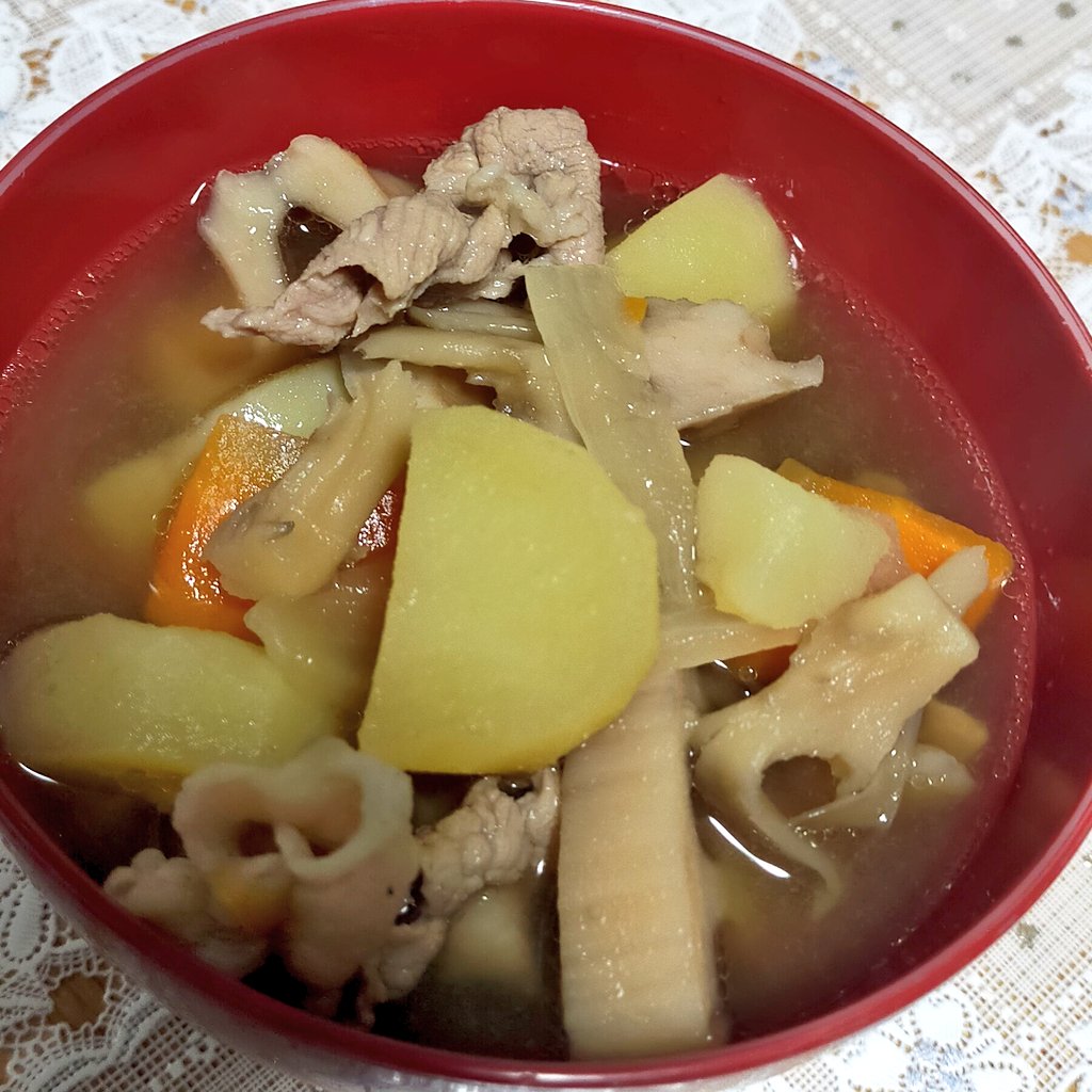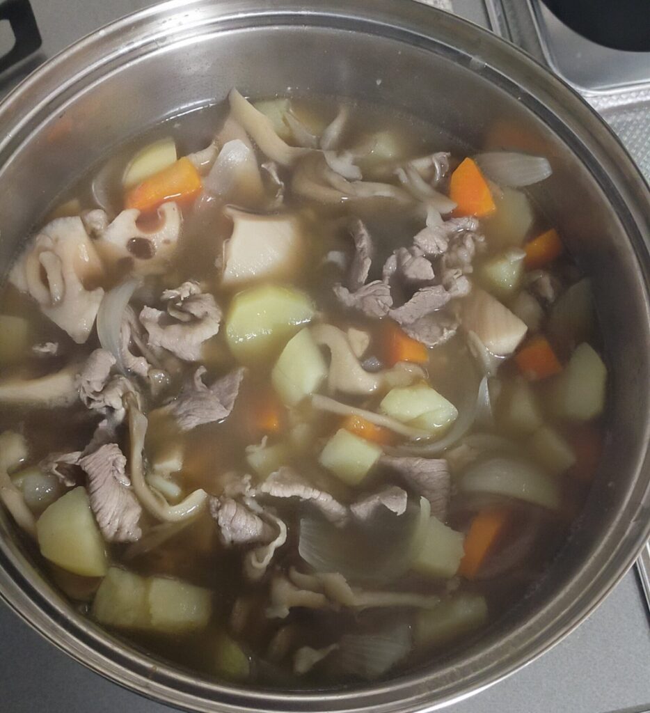 冷蔵庫にあったじゃがいもをメインに具沢山の芋煮っぽいものが出来ました!
